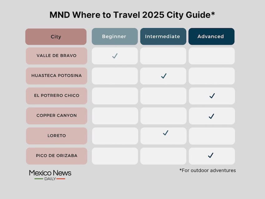 We’ve put together a table summarizing which destination would suit travelers based on their experience in Mexico.
