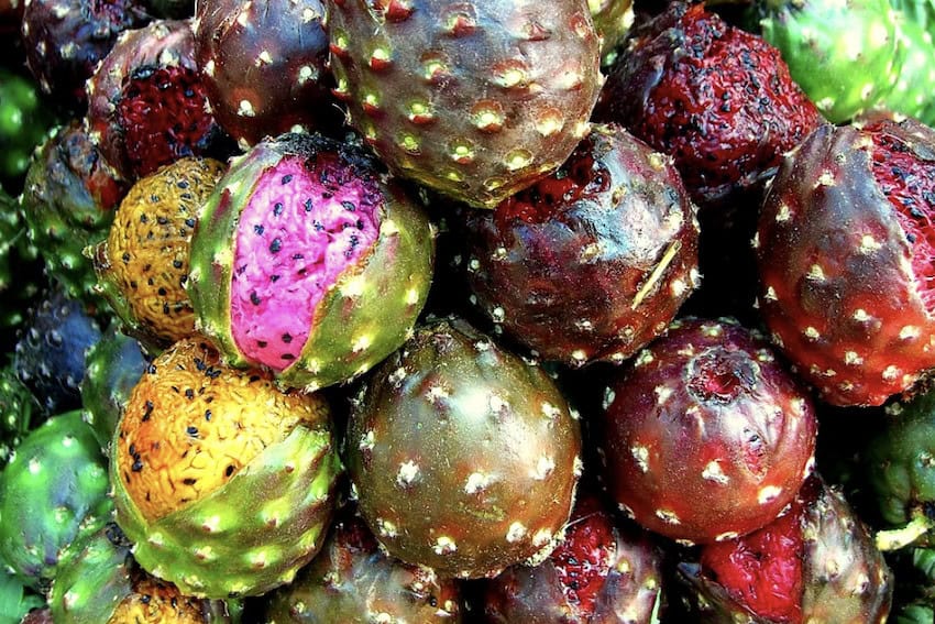 Another endemic cactus fruit, this one of the prickly pear variety, tuna cardona is notable for being grown at elevation (between 5,000 and 8,000 feet above sea level) in 13 mainland states of Mexico. It’s often so abundant in San Luis Potosi and Zacatecas that it forms dense prickly pear forests known as nopaleras, or tunales. These are not as prevalent as they used to be now that more areas have been cleared for agriculture, but tuna cardona remains an important food source in the rural areas where it still grows.